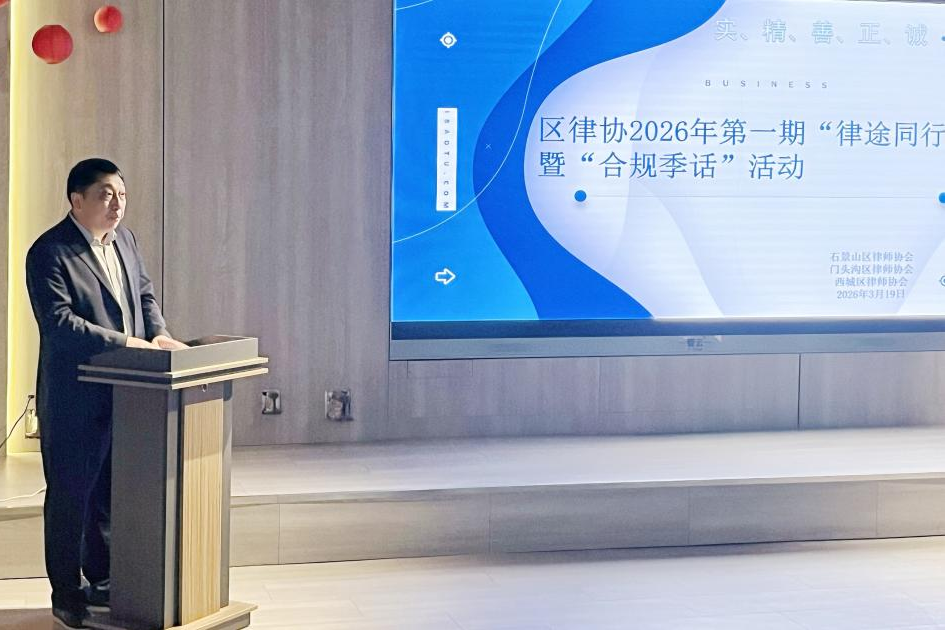 2026年3月19日,北京市西城区律师协会合规与风控业务研究会联合石景山区律师协会业务指导与继续教育委员会、门头沟区律师协会行业发展及业务指导委员会共同举办2026年第一期“合规季话”业务沙龙活动。石景山区司法局副局长师文辉,门头沟区司法局副局长童海峰、律管科科长李莎莎,石景山区律师协会会长邹道明,西城区律师协会财税业务研究会主任王军、合规与风控业务研究会主任任鸿雁、副主任陈鑫、杨昊等出席。三区二十余名律师齐聚一堂,围绕合规业务发展热点、难点问题展开深度交流研讨,凝聚行业发展共识,共促区域合规法律服务高质量发展。