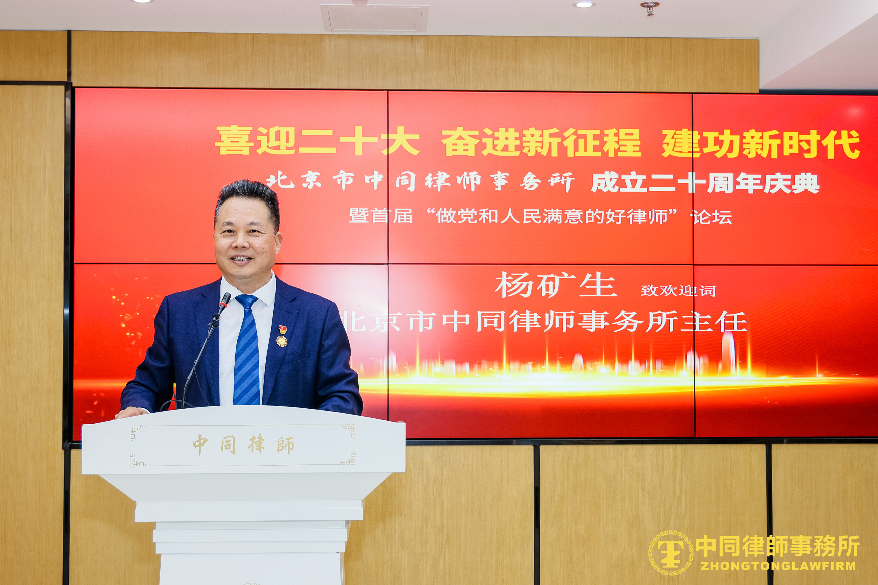 开幕式上,中同所创始合伙人、主任、上届西城区律师协会会长杨矿生律师致欢迎词,热烈欢迎参加庆典的领导、嘉宾和律师同仁们,对长期以来关心、支持中同所发展的各界朋友表示了衷心的感谢,也对多年以来为中同所发展付出辛劳与汗水的广大律师、员工致以崇高的敬意。