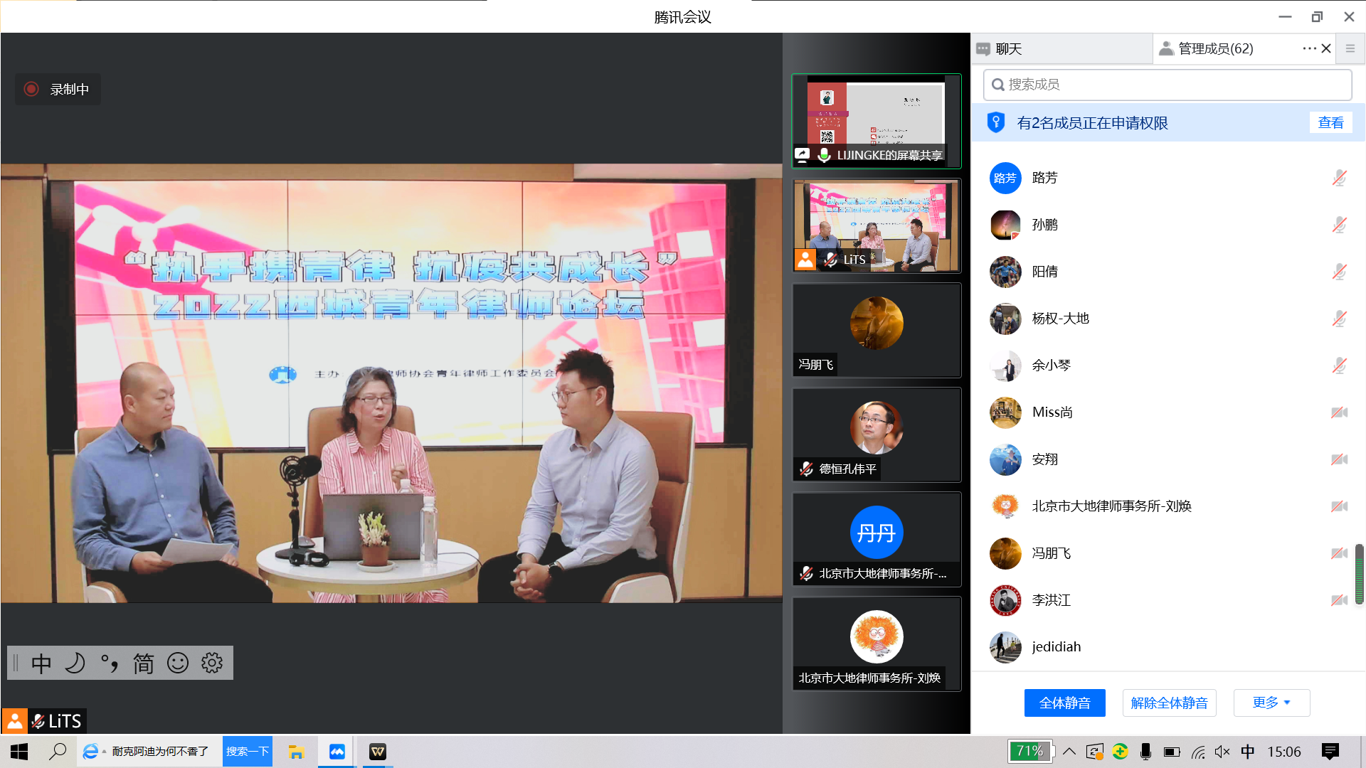 为切实帮助广大青年律师在疫情之下顺利成长,北京市西城区律师协会青工委于2022年6月17日下午在北京市中同律师事务所举办了“执手携青律,抗疫共成长”2022西城青年律师论坛。