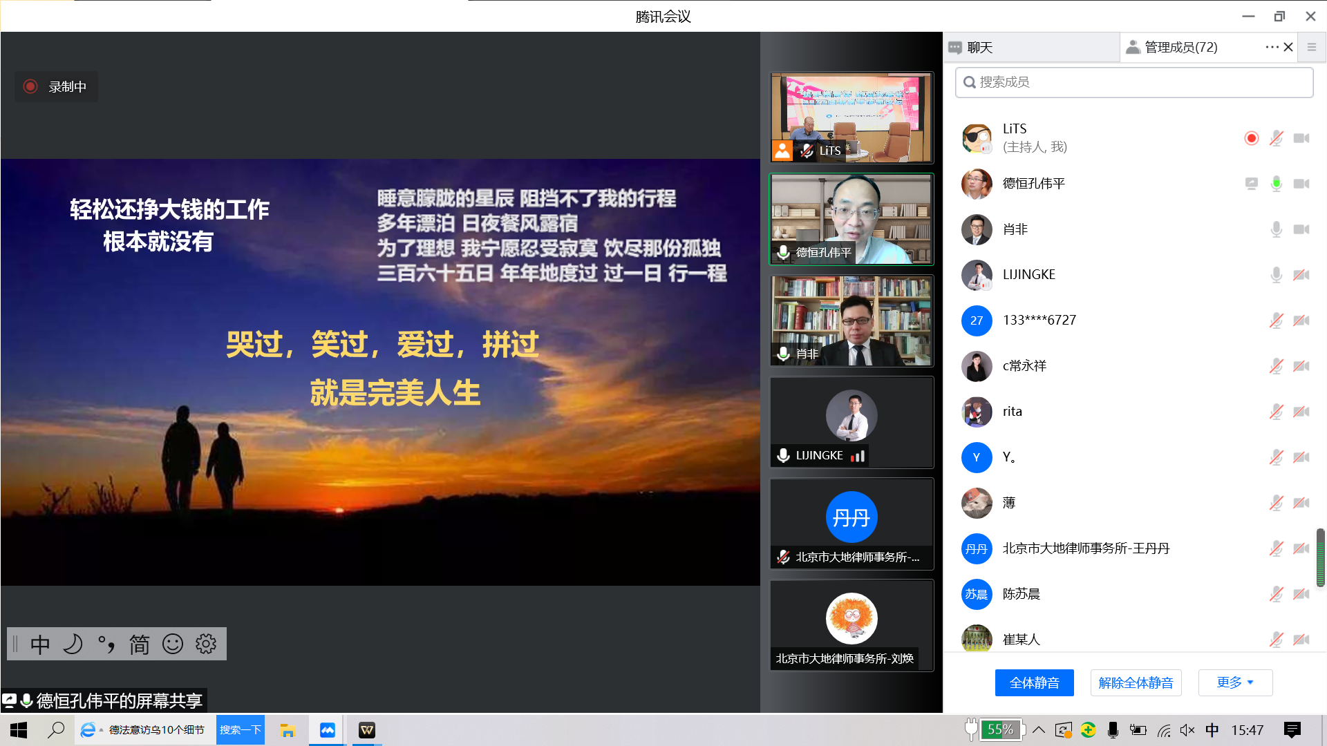 因受疫情影响,本次论坛采用了线上方式举办,共计约80名青年律师线上参与了本次论坛。论坛围绕特殊时期的心理调整、疫情期间的业务拓展与专业提升、线上办公与开庭技巧三大主题进行,由西城律协青工委邀请到的BTV心理咨询专家、知名律所中青年合伙人、西城区法院法官以及西城区优秀青年律师代表与大家进行分享。