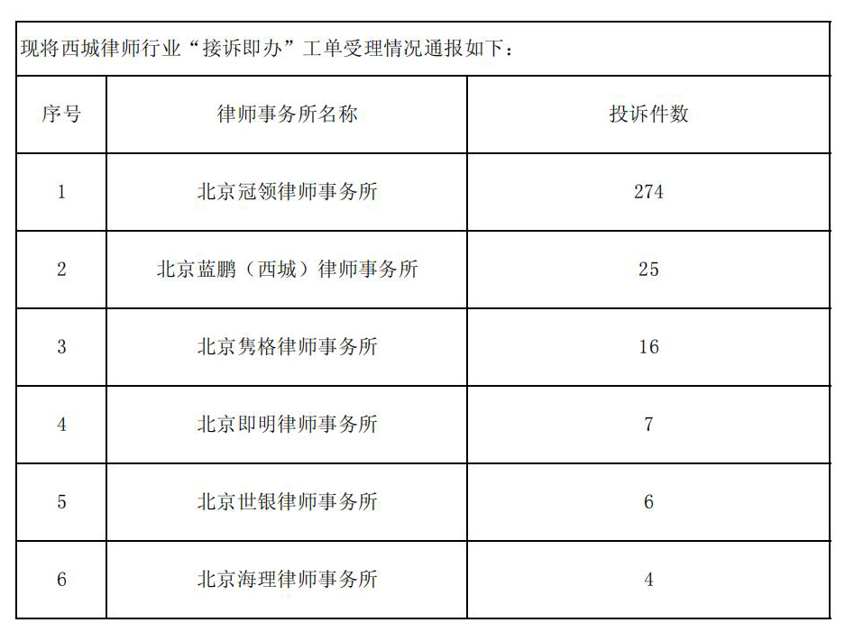 西城律师行业“接诉即办”工单受理情况通报(2025年9月)