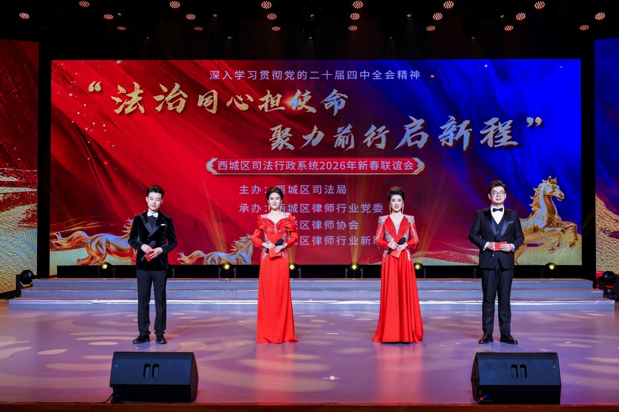 1月28日下午,西城区司法行政系统深入学习贯彻党的二十届四中全会精神,以“法治同心担使命 聚力前行启新程”为主题的2026年新春联谊会在西城区缤纷剧场隆重举行。区司法行政系统干部职工、律师、公证员等法律服务工作者代表近400人欢聚一堂,共贺新春、共叙友情、共话发展。