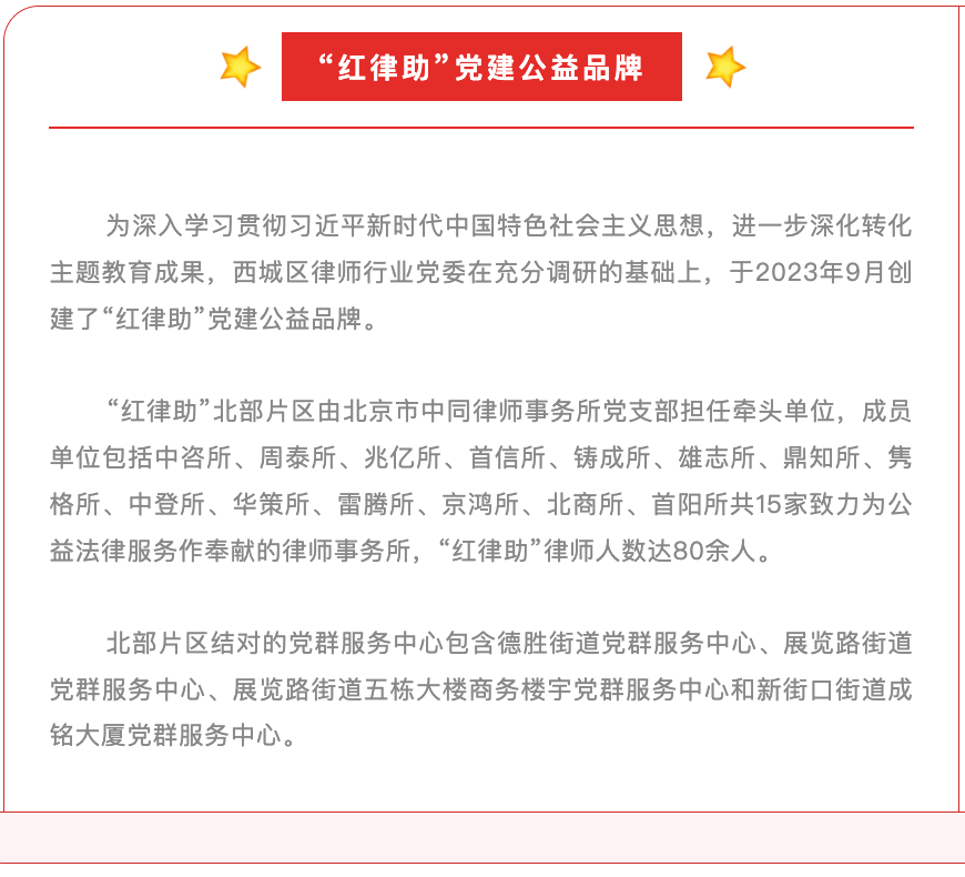 下一步,“红律助”北部片区将联合乙12号院党群服务中心持续打造全民懂法常态化宣传阵地,践行“让法律援助走到群众身边”,每周三下午邀请法律咨询服务进阵地,面向社区及地区居民持续开展法治宣传教育,为基层治理持续注入法治动能。