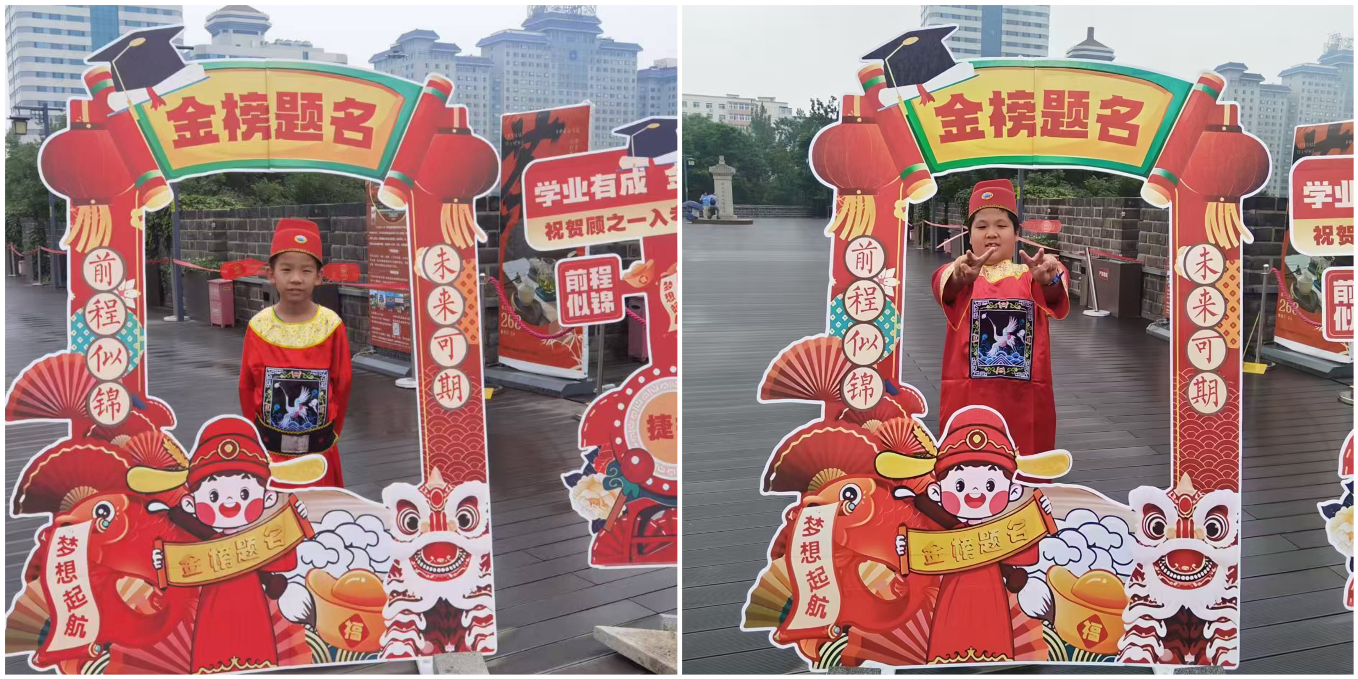 活动现场欢声笑语,每个家庭在打卡合影、手作体验中增进感情。活动尾声,闯关成功的“小小状元”们身穿象征金榜题名的状元服,在西便门城墙上拍照留念,为本次游园会画上圆满句号。