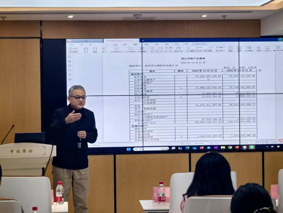 培训上半场,王军律师以《会计报表阅读方法——如何判断企业的财务状况和经营情况》为题进行了分享。王军律师从讲解实际的上市公司会计报表为切入点,向学员们详细的讲解了会计报表中各个会计科目的具体含义以及律师在办理案件时应当重点关注的科目和财务指标。
