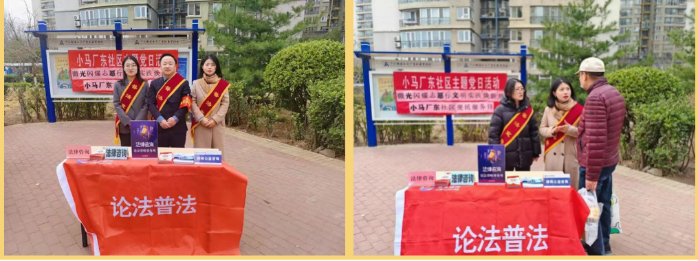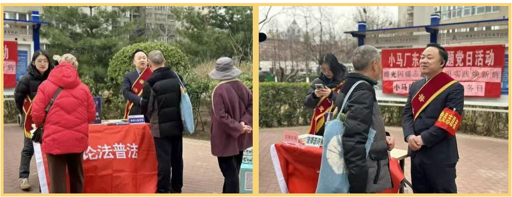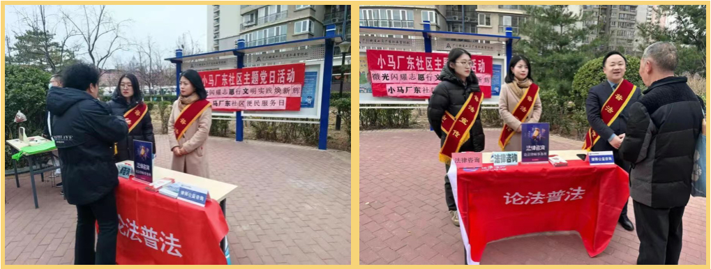 2、3月14日,北京论法律师事务所积极响应小马厂东社区主题党日活动“微光闪耀志愿行 文明实践焕新辉”的号召,在社区小广场为居民带来了一场意义非凡的免费法律咨询服务。此次活动,不仅是律所履行社会责任的体现,更是党员律师们践行使命、服务群众的生动实践。