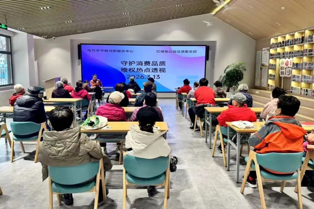 2026年3月13日上午,“红律助”南部片区公益法律服务团成员、北京市汇源律师事务所魏晓东律师走进陶然亭街道亭畔党群服务中心,开展题为《守护消费品质,维权热点透视》的专题普法讲座。魏律师通过分析传统消费领域和新兴消费领域的易发消费者维权风险点,为广大居民朋友进行了风险分析和维权法律知识讲解。