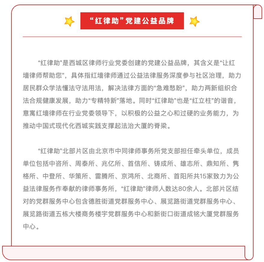 下一步,系统性的公益活动还将递此开展,北部片区将继续秉持需求导向、实效为本的服务理念,深化与展览路、德胜等街道社区的联动合作,建立常态化、精准化的公益法律服务机制,不断优化服务模式、丰富服务内容,聚焦基层群众的实际法律需求,以更专业的力量、更贴心的服务为居民办实事、解难题,让法治力量与雷锋精神同行,为构建和谐社区、建设法治西城贡献北部片区的力量!
